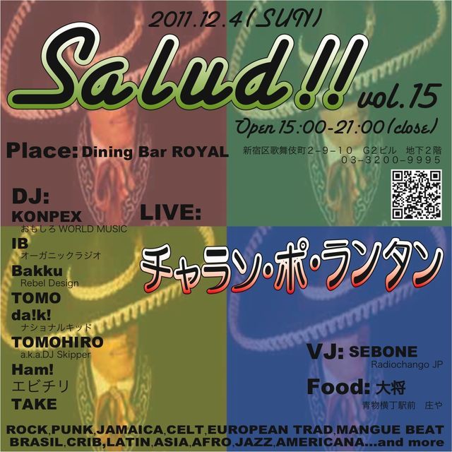 ってなわけで、2011年最後のSalud!!が盛り上がったのはチャランポ様のお陰が非常に大きいのだけど、料理も進化してるし、FLAGも作ったし、イベント後も写真で余韻を楽しめるし、関わった皆様のお陰でどんどん濃いイベントになってきておりますね。